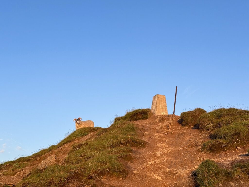 Reaching the summit of Ben Vorlich, there was a lone sheep waiting by the trig point. No people up there, just me and a sheep, who soon ran away!