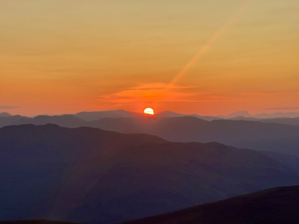 While the overall sunset views weren’t as impressive as those I experienced on Ben Lomond, there was something special about being on the mountaintop as the sky began to glow – the sun about to leave, the day almost over, yet still with the descent ahead!