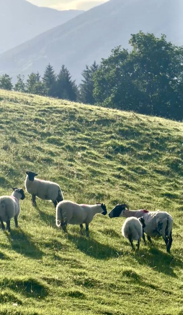You’ll pass through a few gates on this section, and hopefully spot some sheep, as I did, while Ben Vorlich starts to rise prominently ahead.