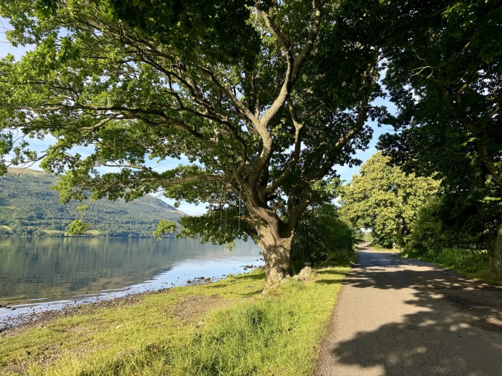The first defining point is passing Ardvorlich House. Before long, the loch comes into view behind you – do turn around for a look!