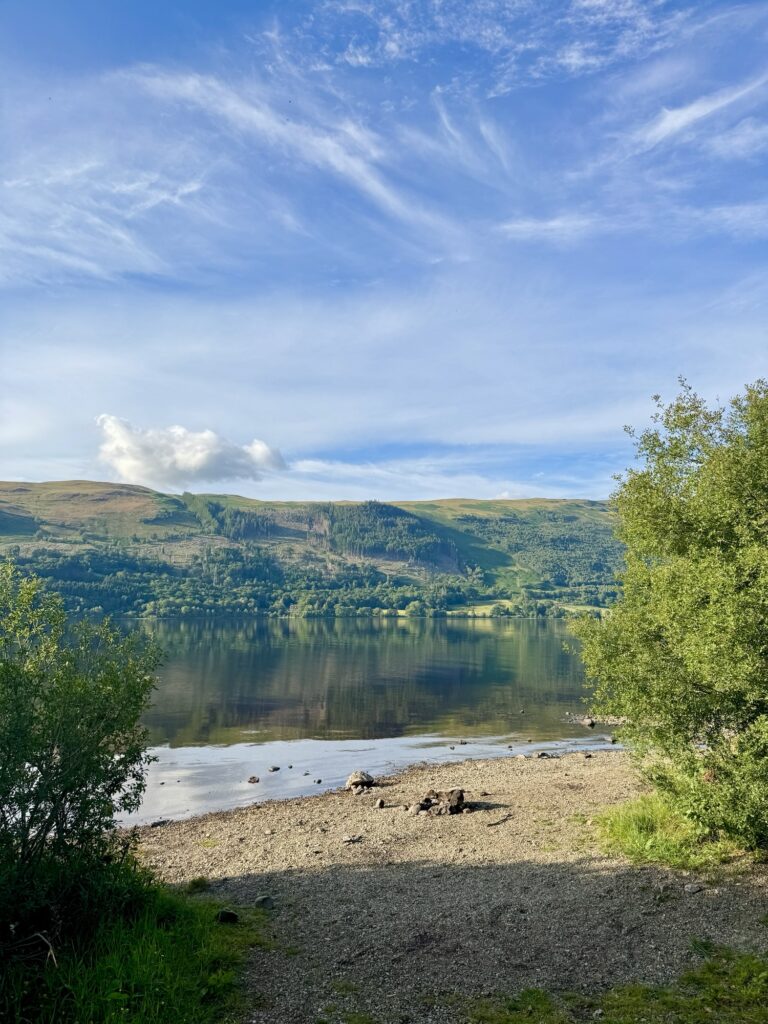 After almost a 2 hour drive, Loch Earn and Ben Vorlich were in sight! As excited as I was to hit the trails, the loch was looking so beautiful that a quick stop off there, by Lochearnhead, was needed! But there wasn’t too much time to ‘waste’, so after a little picnic by the loch it was time to head to Ardvorlich, and begin the hiking adventure.