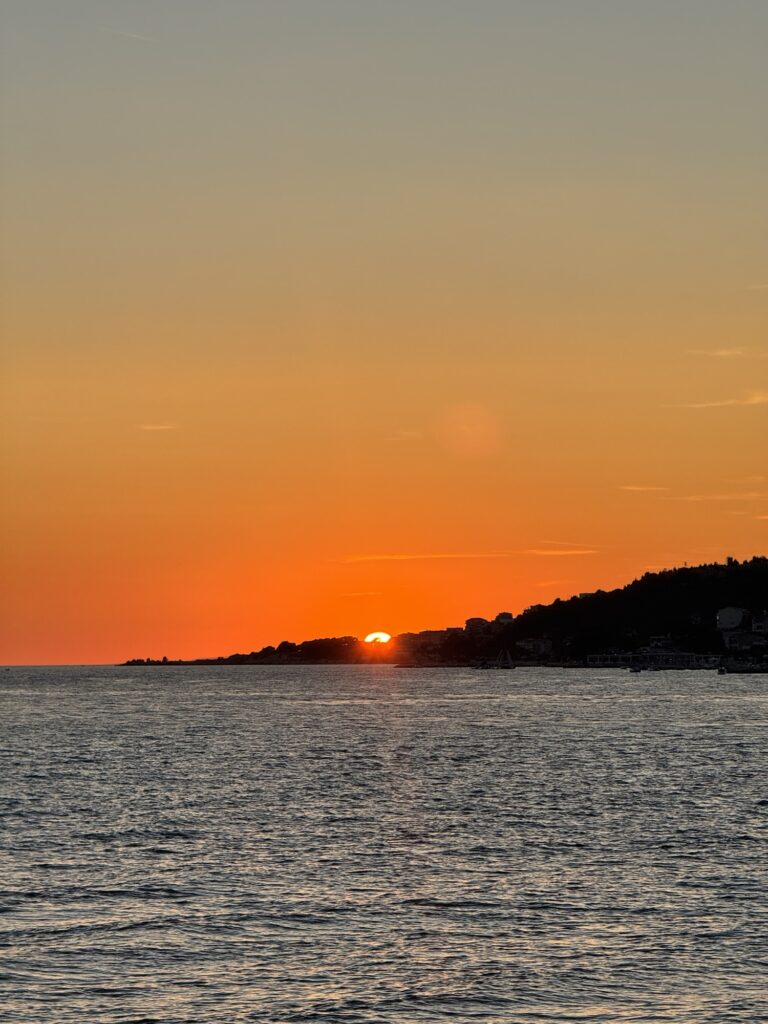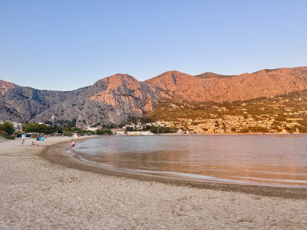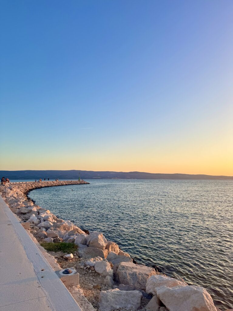 Speaking of which, I definitely recommend heading right to the far end of Velika Plaža at some point during your visit, especially at sunset! Walking out onto the pier makes for the perfect sunset stroll. Nearby, you’ll also find some free ‘sunbeds’ to relax on – which I happily took advantage of when I had an hour to kill before my bus on my last morning in Omiš.