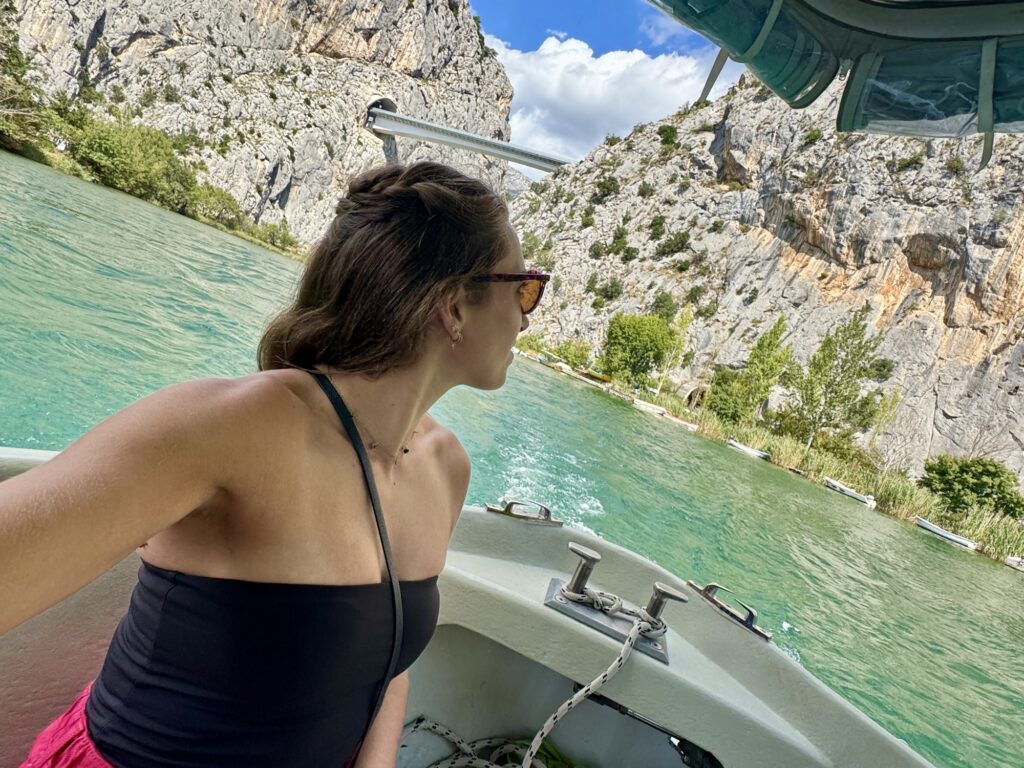 I personally stuck to hiking and a relaxed boat trip along the river. I was dealing with the end of a nasty flu while I was there and didn’t want to overdo it (can never say no to hiking though, especially when it’s one of the most budget-friendly activities around!). So I didn’t get the chance to try everything Omiš has to offer, but that’s also part of travel – doing what feels right for you at the time. I’m really glad I (super spontaneously!) went on the boat trip though; it was the perfect chill-but-still-active vibe I needed, especially since I hiked later that day.