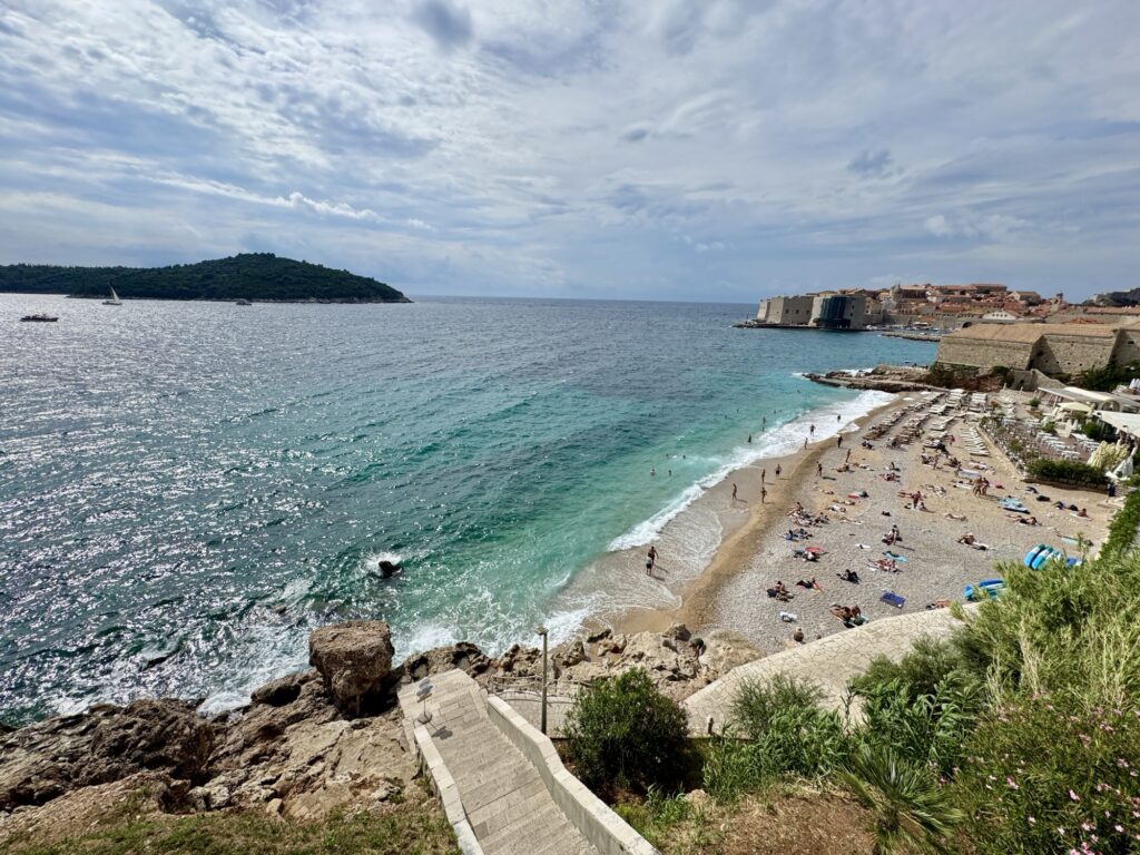 When I spotted the steps leading down to this beach, I knew I had to take them and check it out up close. I’m so glad I did!! While it’s always quieter than Banje Beach, the not-so-great weather on the day I visited made it extra quiet! I really felt like I’d escaped the buzz of the Old Town and found a hidden gem of a beach (though it’s not so hidden if you just go that little further along the coast!).