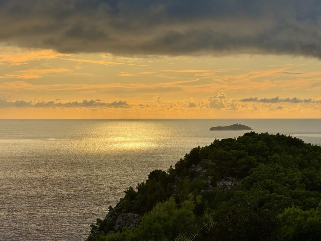 The hike is great, on a super easy to follow trail. The trailhead is about a 30-minute walk from Pile Gate, or around 20 minutes from Love Dubrovnik Hostel, where I was staying. From the start of the trail, it’s around a 2.2km steady climb to the top. The first little section winds through trees, and then the rest of the trail follows a zig-zag path (kinda cool!) that’s not technical, just a bit steep. Don’t worry, there are non-stop views to take your mind off the climb! It can be busy at the top, but there’s plenty of space for everyone to enjoy the insane views over Dubrovnik and the Adriatic, including looking out over many islands. I honestly loved it – the climb and the views!!!!