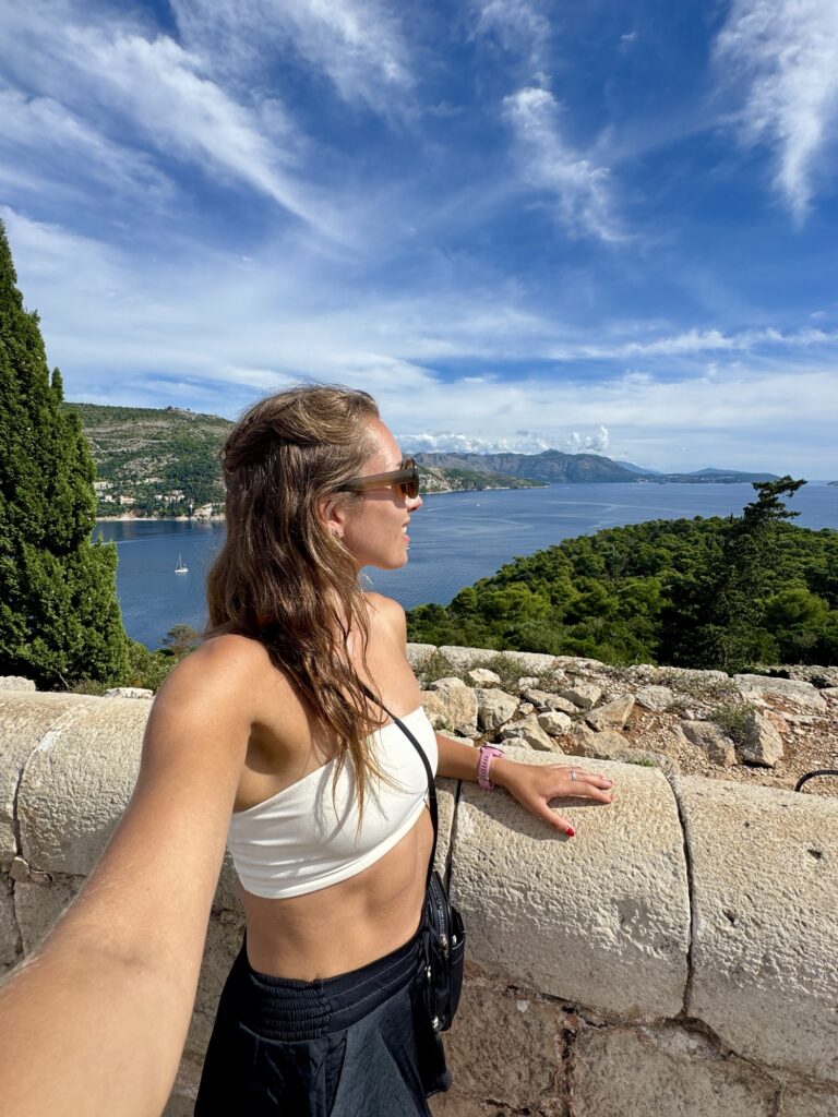 There are various points of interest, from the old Benedictine Monastery and botanical gardens to the small “Dead Sea” salt lake that’s a popular spot for a dip, and my favourite part – the view from Fort Royal. There’s a short hike up to the fort and viewpoint, which offers amazing views over Dubrovnik’s coastline, Lokrum, and the Adriatic Sea. It’s super cool to see the Old Town from this perspective! So even though I didn’t walk the city walls, I still got this bonus Old Town view!!